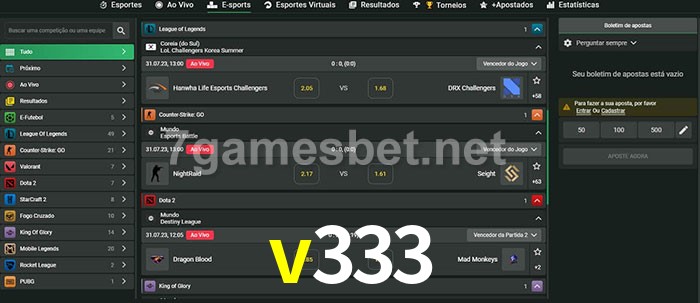 A aposta v333 oferece aos jogadores a experiência mais conveniente de apostas em eSports!
